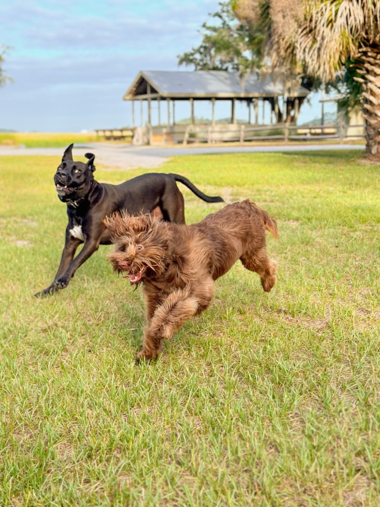 The positives: I’ve never met another canine that is as sociable. He is obsessed with having dog friends! He will spot his pals from across the street and bark until he gets to play with them. Although he hails from Charlotte, NC he’s definitely feeling that Lowcountry lifestyle. Boating, marsh swimming, dock jumping…he’s here for it. Another positive, because loves fellow dogs…I have “Dog Mom” friends now!